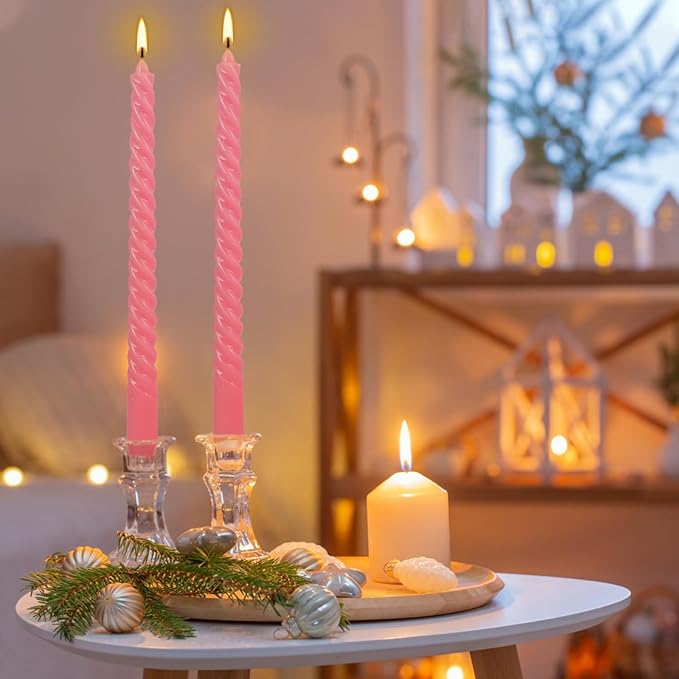 Spiral Taper Candle 12″ PINK Unscented Dripless Candlesticks (Pack of 12 Candles) (ඉටිපන්දම් 12 ක ඇසුරුමක්)